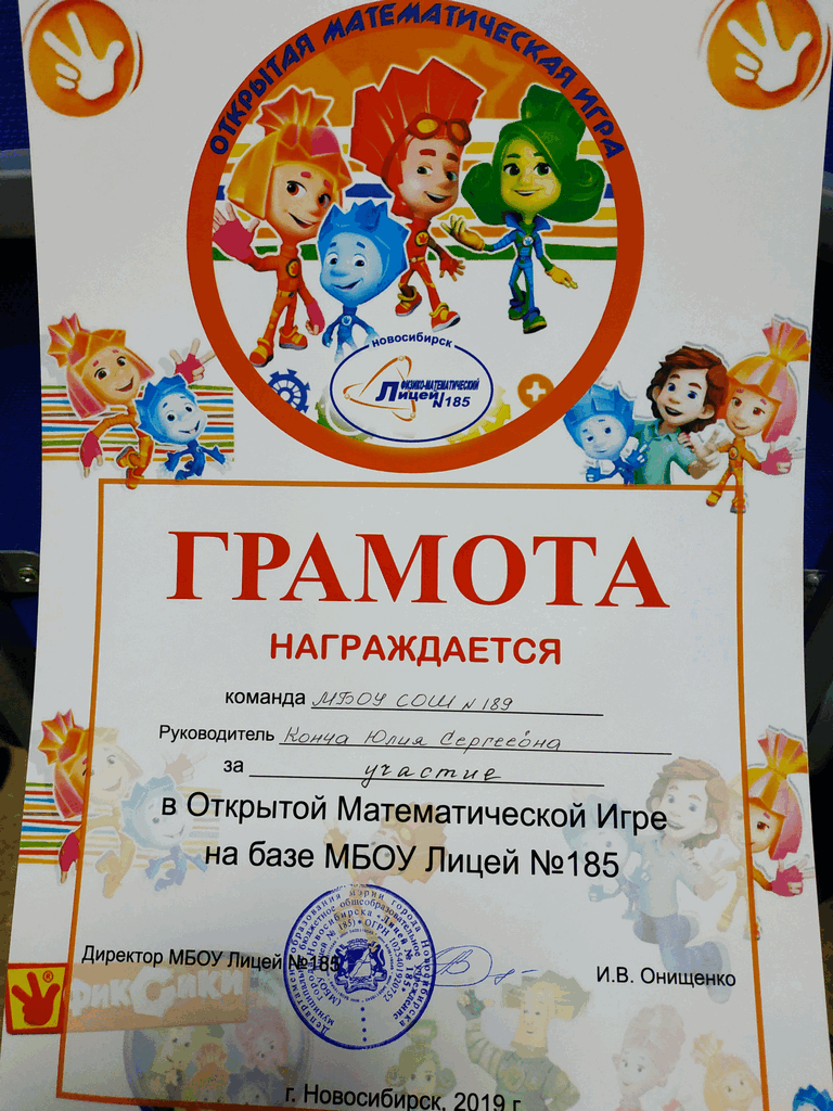 Команда « Победная сумма» 4 «Б»  класса ( классный руководитель Конча Ю.С.),  приняла участие в Открытой  интеллектуальной математической  игре  на базе МБОУ Лицей № 185.